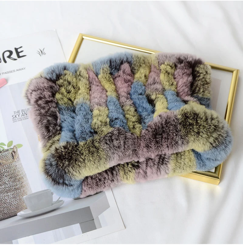 Women Real Fur Handmade Stretch Fur Scarf Knit Genuine Rex Rabbit Fur Headbands Girls Natural Fur Ring Cowl Snood Scarves Winter