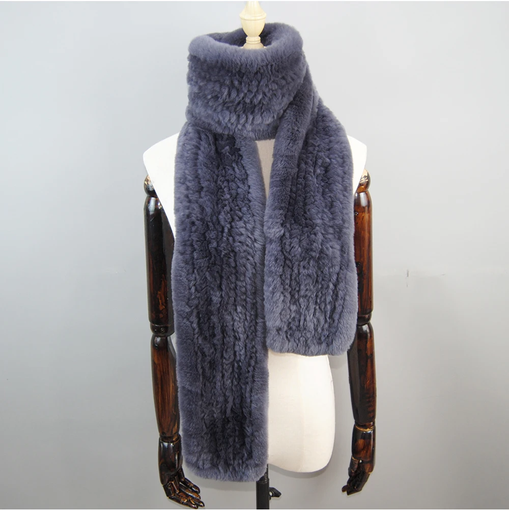 Women's Thick Warm Winter Fashion Brand Fur Muffler Real Fur Scarf High Quality Luxury Big Long Natural Rex Rabbit Fur Scarves